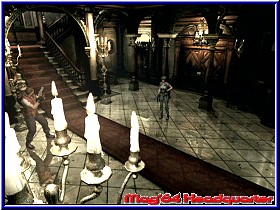 Dazu natürlich diese geniale Rendergrafik, die dem ganzen die Krone aufsetzt. Hier ist eine weitere Tür in den Keller. Sie ist aber zu. Aber umsonst war ich wohl nicht hier. Gott, was für Schreie kommen da von unten. Und eine Geräusch als wenn ein Grabstein von einem Grab wegbewegt wird. Man schaut nur in einen dunklen Weg nach unten und hört diese Dinge. Krass Capcom Krass. :-) Also wieder in die Haupthalle. Ich könnte hier 5 Videos allein vom ersten Tag machen und würde die Atmosphäre nur halb einfangen können. Was aber meine Frage nicht beantwortet.......Wohin jetzt? Ich entscheide mich für die 1. Etage und den Raum über dem Speisesaal. Vielleicht gibt es hier etwas zu holen. Die Tür ist sogar mal offen. Begrüßt werde ich auch hier mit exorbitanten Lichtverhältnissen und einem nicht zu überhörenden Gestöhne. Klasse. Ein Messer in der Tasche, aber Gegner in der Nähe. Hier oben geht es nur über die Empore, vorbei an mehreren Türen und einem sehr schönen Bleiglas. Überhaupt sind die Details extrem gelungen. Der schnellste ist der Bursche nicht. Deshalb kann ich ihm ganz gut entfliehen. Renne praktisch immer eine halbe Runde vor ihm her. Und siehe da, auch hier oben steht eine Statue, Gleich daneben ist eine Lücke im Geländer. 1 und 1, das macht hier in die Lücke schieben und die Statue nach unten fallen lassen was auch funktioniert und sie zerspringt unten im Speisesaal. Bursche, lauf Du hier oben Deine Runden. Ich gehe erstmal wieder. Unten angekommen kann ich einen blauen Edelstein einsammeln. Wofür auch immer. Unwichtig wird er schon nicht sein. Jetzt wo ich einmal hier bin gehe ich doch nochmal in den Gang ganz am Anfang. Vor allem die Tür beim ersten Zombie interessiert mich. Denn ob sie zu oder offen war weiß ich immer noch nicht. Ich habe Glück. Sie ist offen. Wieder Neuland. Kaum drinnen kommt ein extremer Ahhhhh Effekt. Also so eine atmosphärisch perfekt gemachte Stelle habe ich lange nicht mehr gesehen. Rechts ein Fenster, das nur eine begrenzen Lichteinfall zuläßt. Dunkles Blau der Nacht das von kleinen aufsteigenden Nebelschwaden durchzogen ist. Das sieht ja hammerhart aus. Wow! Danach wirds aber nicht minder interessant. Ein Gang an dessen Ende ich einen Raum sehe in dem eine Wackelnde Deckenlampe für bewegliche Lichteinfälle sorgt. Dazu aus der Ferne ein Spiegel, der mich den rechten Teil des Zimmers sehen läßt. Diesmal ohne Rennen gelange ich an eine Treppe nach oben. Hier stehen auch Pflanzen herum, Stühle und mal wieder eine Leiche. Moment...., die Pflanzen. Tatsächlich, das sind Herbs. Grafisch genauso gestaltet wie die Umgebung, kann man sie fast schon mit dem Inventar verwechseln. Gleich 2 davon die meine Gesundheit wieder auffrischen. Was wird mich wohl oben erwarten. Irgendwie muß ich mal ein Ende finden. Ihr sollt ja auch mit dem Lesen nachkommen. :-) Aber zumindest weiß ich wo ich besser speichern sollte und werden morgen erstmal neu beginnen und hier abspeichern. Beibt dabei wenn morgen der nächste Teil des Tagebuches erscheint. Ich hoffe Ihr habt mit dem Tagebuch Spaß. Ich bin bisher von so ziemlich allem begeistert. Einzig die Steuerung ist noch gewöhnungsbedürftig. Aber das wird schon. Und wenn nicht dann müssen eben einige hier mit einem Dolch im Auge herumrennen.;-) In diesem Sinne. Bis morgen.