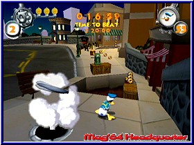 Batman mit seinem speziellen grafischen Ambiente oder auch Tarzan. Ob das ganze dann im Endeffekt der Masse gefällt ist reine Geschmackssache. Mehr möglich ist auf jeden Fall. Was man auch über den Rumbler sagen muß. Mittlerweile muß ich das Thema in jedem Test extra ansprechen. Was läuft hier nur verkehrt? Auch Donald reiht sich in die Phalanx der Spiele ein, die den Rumbler eher mäßig nutzen. Er ist spürbar, aber gegen ein N64 Rumble Pak wesentlich schwächer. Ich hoffe sehr das die Entwickler hier eine Möglichkeit finden es besser zu machen. Abschließend kann man sagen das Donald Duck Quack Attack seine Zielgruppe hat und auch finden wird. Spielerisch sehr schön gemacht fehlt mir aber das neue im Spiel. Wer die alten Spiele kennt wird inhaltlich nicht viel neues entdecken. Da hilft auch der Challenge Modus und die Special Moves nichts. Die Steuerung ist gut und stellt auch jüngere Spieler vor keine Probleme. Der Schwierigkeitsgrad ist ausgewogen, für ältere und Mario erprobte Spieler aber zu leicht. Im Vergleich zu Tarzan spielt man aber wesentlich länger. Grafisch mit einem eigenen Stil ausgestattet werden sich hier die Geister scheiden. Ich empfinde die Gestaltung als gelungen und passend zm Thema. Sehr gut ist dagegen der Sound, Donalds Animationen und die sehr schön gemachten Sequenzen im Spiel, welche die Story gut erklären und auch was für das Auge sind. Hier erwartet den Spieler ein typischer Disney Titel. Wer auf einen Jumper im Mario Umfang und Format hofft wird nicht fündig. Jüngere Spieler die ihren Comichelden selber steuern wollen sind hier richtig. Denen kann man das Game ohne Probleme empfehlen.