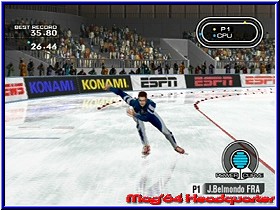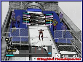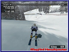 Bis ihr aber akzeptable Punktestände habt, muß man sich schon im Time Trial Mode quälen. Dort kann man alle Sportarten bis zum Erbrechen üben und sich langsam steigern. Links sehen wir die Liste aller Disziplinen und rechts daneben ein kleines Fenster, wo ein Demo dazu läuft. Darunter befindet sich die Weltrecordanzeige und ganz unten der eigene Medaillenspiegel dazu. Als Sportarten gibt es der Abfahrtslauf, Slalom. die 90 m und 120 m Schanze, Freestyle Skiing, die Halfpipe beim Snowboarden, der 500 m Eisschnelllauf, Bobfahren, Curling und Eiskunstlaufen. Alle Disziplinen verlangen eine recht lange Gewöhnungsphase, bis man den entscheidenden Dreh heraus hat und man vergleichbare Ergebnisse erziehlt, wie die Konkurrenz. Die Herausforderungen an euch sind dabei ziemlich unterschiedlich. Während beim Eisschnelllauf und der 120 m Schanze der permanente Einsatz der A und B Tasten erforderlich sind, kann man beim Curling eine ruhige Kugel schieben. In der Halfpipe und beim Eiskunstlauf sind schnelle Reaktion und Auffassungsgabe verlangt. Der Slalom ins die „aasigste“ Disziplin von allen. Die Strecke ist zwar kurz, aber die Steuerung so ungewohnt direkt und doch irgendwie etwas unhandlich. Hier bedarf es viel Übung und Johannisbeerkraut zur Beruhigung. Hat man soweit das Handling verinnerlicht, das man sich an die großen Aufgaben wagen kann, sollte man sich des Championship Modus annehmen. Der größte Unterschied zwischen den Geschlechtern, ist das die Damen nicht von der Schanze stürmen, stattdessen das Eiskunstlaufen zelebrieren. Der Wettkampf findet an drei Tagen statt, wo es jeden Tag 3 Disziplinen zu bestehen gilt. Die Reihenfolge ist dabei willkürlich. Mit sieben CPU gesteuerten Gegnern geht es dann auf die Piste und der Kampf um die höchste Punktzahl beginnt. Wenn man einen menschlichen Partner hat, der die Sportleidenschaft teilt, dann kamm man auch im Championship Modus zu zweit an den Start gehen. Nun muß man sich einen Athleten aus 8 verschiedenen Nationen auswählen. Diese Sportler unterscheiden sich aber nicht nur in ihrer Staatenzugehörigkeit und Hautfarbe, sondern auch noch in ihren individuellen Eigenschaften. So kann man an Hand der Skala die Fähigkeiten in Bezug auf Speed, Power, Sprungvermögen und Technik ablesen. Vor jedem Wettkampf, egal ob Trial oder Championship, werden die elementaren Tastenfunktionen erklärt und in einem Deme optisch dargestellt. Dann endlich geht es los. Der Kommentator bringt mit seiner Stimme ordentlich Schwung in das ganze. |