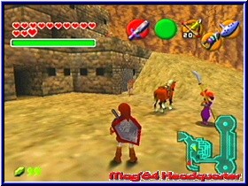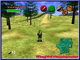 Aufgeteilt ist der Inhalt in 4 Vollversionen vergangener Zelda Spiele sowie einem Wind Waker Promo Video, einer sogenannten Retro Perspektive und einer 20 Minuten Demo zu Wind Waker. 3 verschiedene Locations darf der Spieler in der Demo spielen, wobei alles drumherum begehbar ist, sofern man nicht unbedingt zwingend wichtige Items benötigt um voran zu kommen. Denn neben der Einschränkung exakt 20 Minuten spielen zu können fehlen verschiedene Items um z.b. die Windrichtung zu Ändern und so entlegene und in 20 Minuten durchaus erreichbare Locations zu betreten. Dafür bietet diese Demo aber Spielern die Wind Waker noch nicht kennen (gibt's die??) einen guten Einblick in das Spielsystem und die verschiedenen Gameplay Möglichkeiten. Hier muß man auch grafisch auf nichts verzichten gegenüber der Vollversion. Ganz im Gegensatz zum Promo Video zu Wind Waker, das in der typischen und oftmals schon erlebten schwachen Sequenzen Grafik auf dem GCN daherkommt. Um aber zu sehen was neben den Demo Locations so auf den Spieler wartet reicht es allemal. Wesentlich interessanter ist da schon die sogenannte Retro Perspektive. Könnte man anfänglich noch annehmen das es sich hier um irgendetwas altes vom Ur-Gameboy handelt so wird man beim aktivieren eine feine Sache zu sehen bekommen. In einem längeren selbstlaufenden Trailer werden alle Zelda Spiele seit dem Beginn der Serie nochmal kurz mit InGame Szenen vorgestellt, so das man auch als späterer Zelda Einsteiger mal so weiß wie die zeitliche Abfolge der Versionen und Titel war. Soweit die einzelnen Bereiche, die eher zum passiven zuschauen plus Wind Waker Demo gehören. Wesentlich interessanter dürften natürlich die 4 Vollversionen auf der Disk sein. Hier geht Nintendo den Weg die beiden ersten Zelda Spiele zu bringen und die sicherlich berühmtesten und erfolgreichsten. So findet Ihr die beiden NES Klassiker "The Legend of Zelda" und "Zelda II: The Adventure of Link" auf der Disk als auch die beiden N64 Klassiker "The Legend of Zelda: Ocarina of Time" und "The Legend of Zelda: Majoras Mask". Wählt man die einzelnen Titel an bekommt man nach dem eigentlichen Logo immer ein komplettes Steuer Setup, das natürlich an das GameCube Pad angepaßt wurde. Bei den NES Titeln etwas ungewohnt sind die N64 Titel nicht erst seit Master Quest sehr gut spielbar. Auch wenn man die beiden N64 Titel eigentlich nicht nochmal vorstellen muß beginne ich mal mit Ocarina of Time. Vielleicht eines der besten Spiele aller Zeiten auch mein persönlicher Favorit.