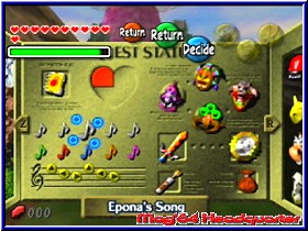 Auch wenn der Zahn der Zeit natürlich am Titel nagt und die technische Umsetzung heutzutage niemanden mehr hinter dem Ofen hervor lockt, so ist neben dem Gameplay auch die Spielzeit immer noch kaum erreicht in diesem Genre und viele NextGen Spiele können sich nach wie vor eine Scheibe davon abschneiden. Auf der Memory Card benötigt ein Save File dabei 9 Seiten und Ihr dürft das Spiel natürlich in komplett lokalisierter Form spielen. Dabei ist also das Original spielbar und nicht die etwas schwerere Master Quest Variante. Wie bei allen anderen Titeln, sofern man sie kennt findet man als Spieler sehr schnell hinein und bekommt schnell das Feeling "Ach waren das noch Zeiten". Ich bin je eigentlich kein Freund dieser Denkweise, so ist sie hier sicherlich angebracht. Denn auch meine Spielegeschichte ist durch diesen Titel für immer geprägt gewesen. Technisch muß man in dieser Version wie schon bei der Wind Waker Beigabe auf nichts verzichten. Kurze Ladezeiten wie bei allen Spielen auf der Collectors Edition ist die Framerate und Grafik leicht verbessert gegenüber dem Original. Dazu kommt auch hier die Rumble Pak Unterstützung um an bestimmten Orten Secrets zu finden. Gespeichert wird hier wie beim Original wenn man die Pausenmenus wieder verläßt. Allein dieses Spiel ist das ganze Wert, da man damit wenn man ihn nicht schon kennen sollte eines der Highlights in der Spielegeschichte noch einmal genießen kann. Die zweite N64 Variante Majoras Mask war damals schon ein Spiel das die Zelda Fans ob seines 3 Tage Features und der damit verbundenen Zeit im Nacken in 2 Lager teilte. Es galt halt immer alles in diesem 3 Tages Turn zu erledigen und man kam oftmals ein wenig in Zugzwang wenn ein Dungeon partout nicht zu knacken war und die Zeit drängte. Dennoch ist es ein Gewinn auch dieses Spiel endlich mal wieder abseits des N64 nochmal spielen zu können. Ich habe das selber gemerkt als ich das Spiel nochmal begonnen habe. Durch die Master Quest Variante war Ocarina of Time noch in naher Erinnerung. Majoras Mask war aber schon seit Jahren mehr in der Erinnerung greifbar. Nun doch nochmal zu beginnen war schon ein Erlebnis. Wobei man hier sagen muß das nicht alles Gold ist was glänzt. Das beginnt bei der Memcard Belegung, die mit 21 Seiten das happigste Spiel auf der Disk darstellt. Das man bis zum ersten Speicherpunkt eine gute Stunde spielt ist eine ganz andere Geschichte. Denn erst nach der Verwandlung vom Deku Link zurück in den normalen ist das ganze möglich.