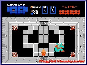 Schon lustig das ich dafür dann doch mal in meine eigene Lösung von damals schauen mußte. Man wird halt alt und vergißt doch das eine oder andere. ;-) Aber egal welchen Charakter man trifft, Erinnerungen kommen dann auf einmal sehr schnell. Auch wenn man nicht alle Zusammenhänge gleich wieder parat hat. Etwas Kritik gibt es hier aber. Nintendo weist den Spieler zwar schon vor dem Spielstart darauf hin das der Sound im Spiel ab und zu Probleme machen kann, dennoch trübt das nicht nur den Soundpart. Bei Sequenzenübergängen und Locationswechseln gibt es immer wieder kleinere Soundruckler und die Musik verschluckt sich ein wenig. Was anfangs wenig stört führt im Verlauf immer mal wieder zu einer einbrechenden Framerate wenn man eine neue Location betritt. Auffällig und störend muß man sich daran gewöhnen. Hier schien die Konvertierung dann doch schwerer zu sein als bei Ocarina of Time, auch wenn man sich das schwer vorstellen kann. Um die Geschichte der Verwandlungen und Begegnungen zu erleben stellt dies aber keinen Hindernis Grund dar. Spielbar ist es ja allemal, nur eben ab und zu mit den technischen Macken. Speichern kann man später dann ja immer an den Eulenstatuen, auch wenn das Menusystem in einem Ocarina of Time in diesem Part immer schon besser war. Will man dann in den Anfängen der Videospielgeschichte schwelgen darf man die angesprochenen NES Titel zocken. Mit The Legend of Zelda gleichmal das erste Spiel der Serie mit dem eigentlich alles begann. Ach wie niedlich wenn man heutzutage die Grafik und den Sound hört und sich dennoch an durchgezockte Nächte erinnert die auch dieses Spiel mit sich brachte. Hier ist dann auch die Steuerung vor allem in der Menuführung recht ungewohnt. X und Y dienen hier um in den Menu durchzuschalten und A und B gehören hier wirklich noch nur zum Action Gameplay. Sein Schwert hatte der gute Link schon immer dabei. In der Iso Sicht die heutzutage an die GameBoy Umsetzungen erinnert läuft man in 4 Richtungen umher und senst Gegner um und löst die verschiedenen Rätsel. Wobei das System mit A und B für Aktionen bei allen GB Varianten genutzt wurde. Aus einem Pool an Items und Waffen verteilte man sie so auf die Taste und nutzte sie. Auch der Ur Sound der Zelda Spiele wurde ja hier geboren und klingt einem in der typisch blechern klingenden Variante von damals entgegen. Speichern kann man hier fast jederzeit, wobei ebenfalls mehrere Savegames möglich sind.